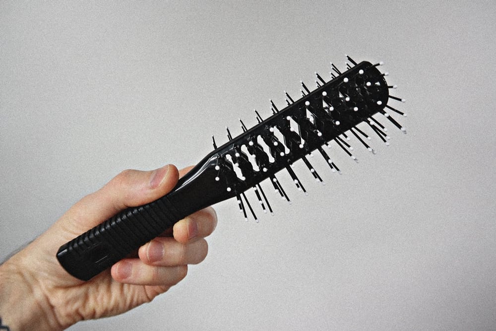 Przy suszeniu czy modelowaniu włosów przydaje mi się szczotka. Co prawda przy quiffie można suszyć włosy rękę i uzyskać jeszcze fajniej roztrzepane włosy aczkolwiek do podkręcenia grzywki czy ukierunkowania włosów przy wicherku przyda się właśnie szczotka. Posiada z jednej strony ząbki o długości 20mm, a z drugiej strony o długości 10mm. Dzięki odpowiedniemu ich rozstawowi pozwala na “złapanie” włosów podczas suszenia i ich wyprostowanie oraz nadanie im dodatkowej objętości. Powiem szczerze, że sam używam jej również w barber shopie (jak połowa Polski zresztą).