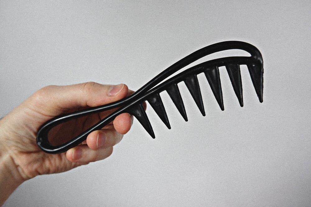 Kolejnym fajnym gadżetem jest grzebień do włosów, ale nie taki zwykły tylko ten z grubymi i szeroko rozstawionymi zębami. Wykonany jest z plastiku, jest lekki i poręczny. Do jego zadań należy tworzenie na włosach tekstury czy ładnych grubym pasm włosów. Idealnie sprawdza się przy fryzurach gdzie chcemy uzyskać efekt włosów przeczesanych ręką. Must have każdego faceta !
