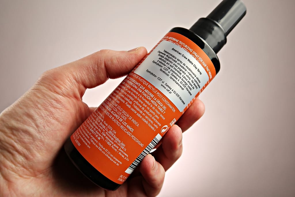 American Crew Matte Clay był produktem praktycznie idealnym. Odznaczał się kremową konsystencją, łatwością aplikacji, zmywania. Był lekki, a zarazem miał chwyt i matowe wykończenie. Producent postanowił jeszcze bardziej ułatwić nam, użytkownikom aplikację bo teraz podobne efekty co Matte Clay w paście otrzymamy w psikadełku. Z opisu na opakowaniu możemy wywnioskować, że spray ma zapewnić naszym włosom długotrwałe utrwalenie, matowy finisz oraz dodać objętości, tekstury, a także pogrubić włosy. Ale od początku…