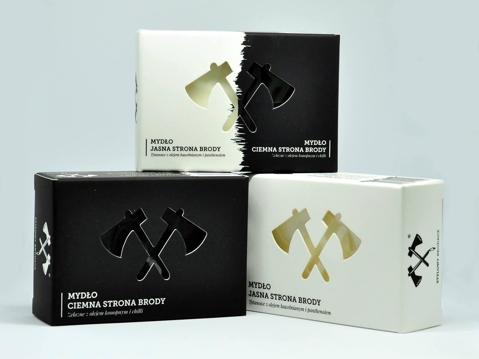 U Stylowego Brodacza ostatnio dużo się dzieje. Do tej pory na pewno kojarzyliście go ze szczotkami i grzebieniami do brody. Sam na blogu i kanale YouTube recenzowałem chyba wszystkie jakie do tej pory wyprodukował. Sebastian ostatnio otworzył swój barber shop – THE BRO Barbershop.pl, w którym dopiero co byłem na strzyżeniu (relacja wideo). A tu nagle pojawiają się jego mydła. I to nie jedno ale 3: mydło ciemna strona brody to produkt z olejem konopnym i chilli, jasna strona brody to mydło z olejem bawełnianym i pantenolem, a mydełko nr 3 łączy obie “moce”. Mydełka mają po ok 100 g, mix 2 x 50 g. Od strony wizualnej wygląda to bardzo ładnie i przejrzyście oraz kompatybilnie z woreczkami na kartacze, a także kartonikami, w których od pewnego czasu szczotki są sprzedawane. Pełnego składu oraz ceny mydeł chwilowo nie zdradzę. Poczekajmy na oficjalną premierę.
