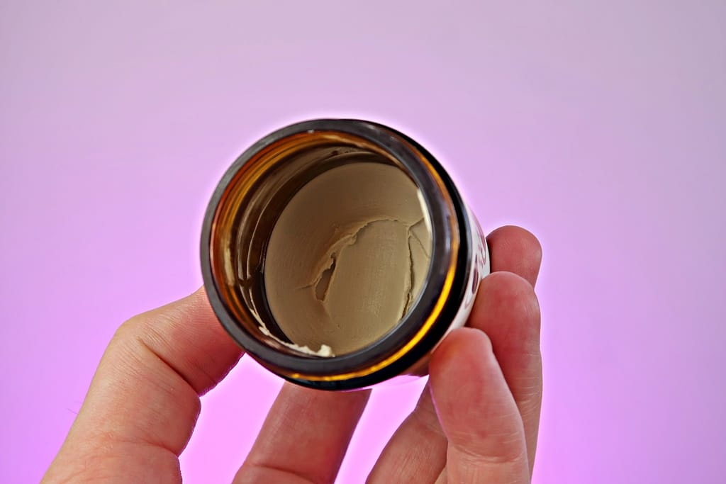 Glinka Caeli jest beżowego koloru i ma bardzo kremową konsystencję. Jest to produkt bardzo miękki, lekki, super wybiera się ze słoiczka. Jednolita masa łatwo rozciera się w dłoniach i po dokładnym rozprowadzeniu jest prawie niewidoczna na skórze.