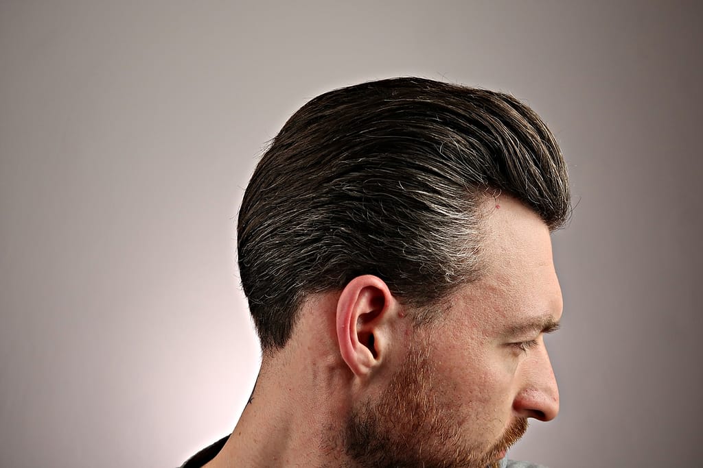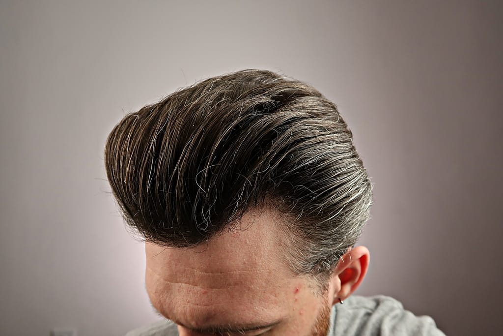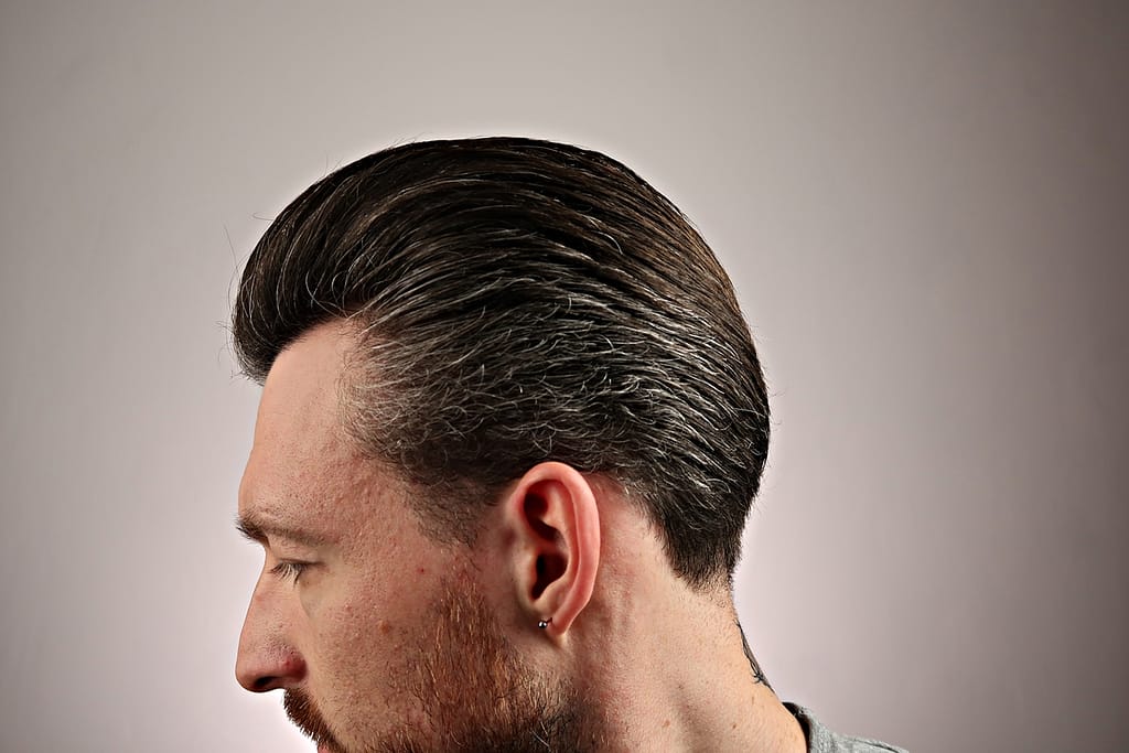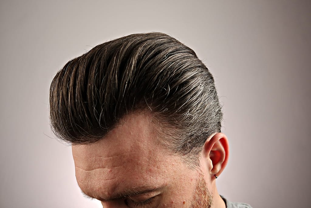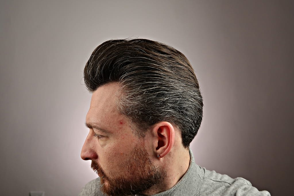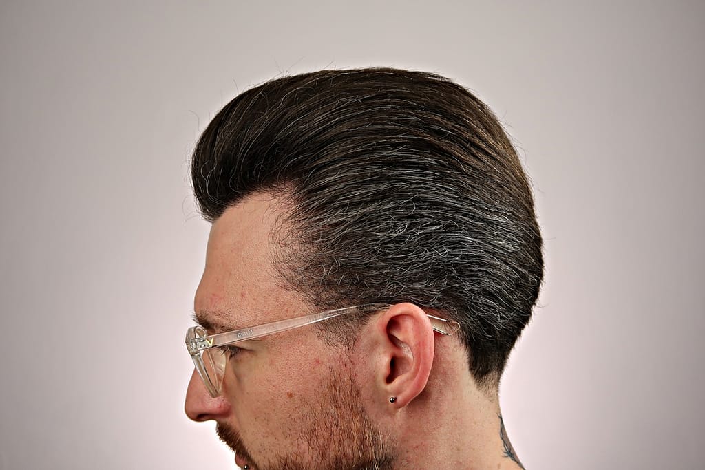 - chwyt średni, wydaje się jakby włosy nie były mocno związane pomadą ale jednak się trzymają i na twarz nie lecą