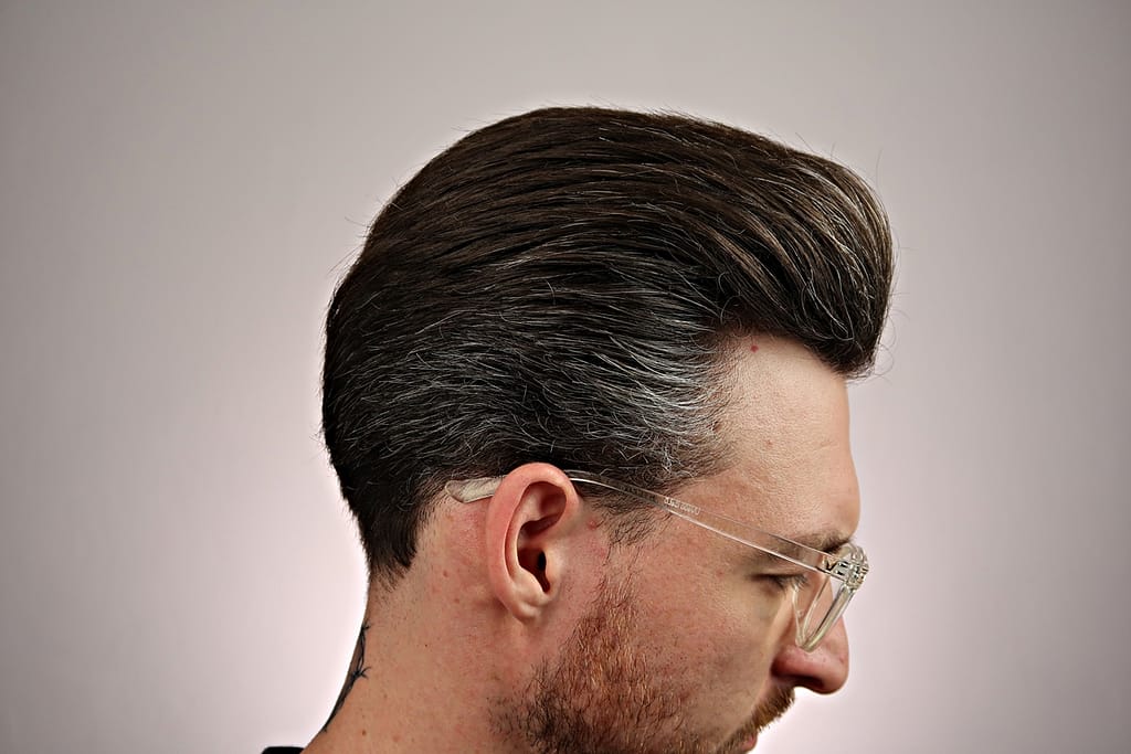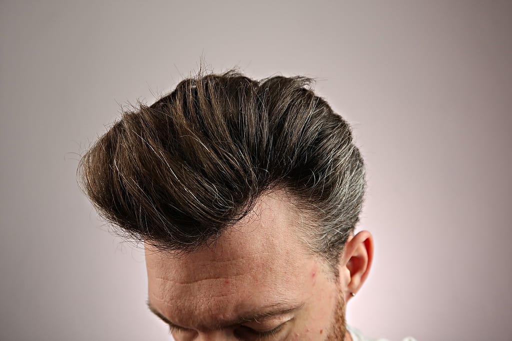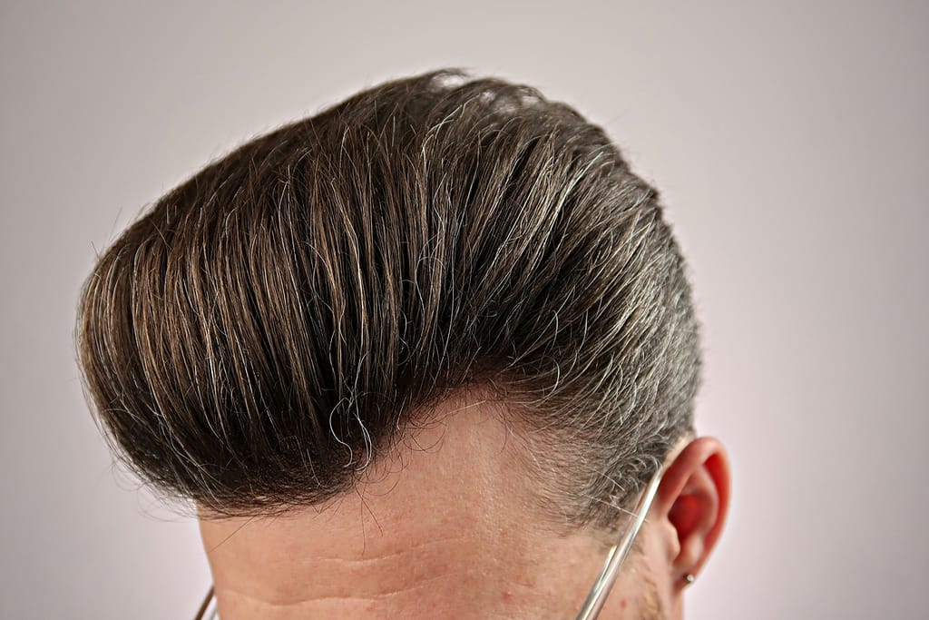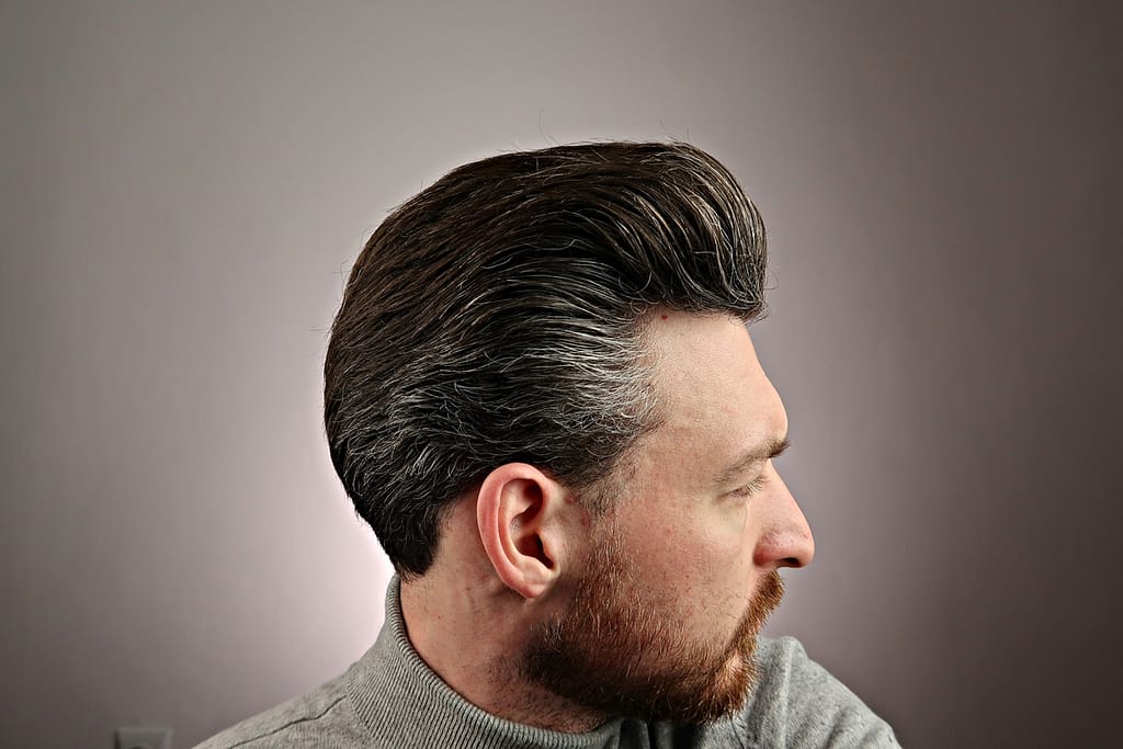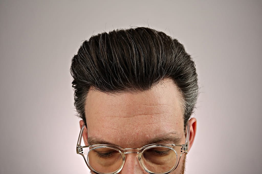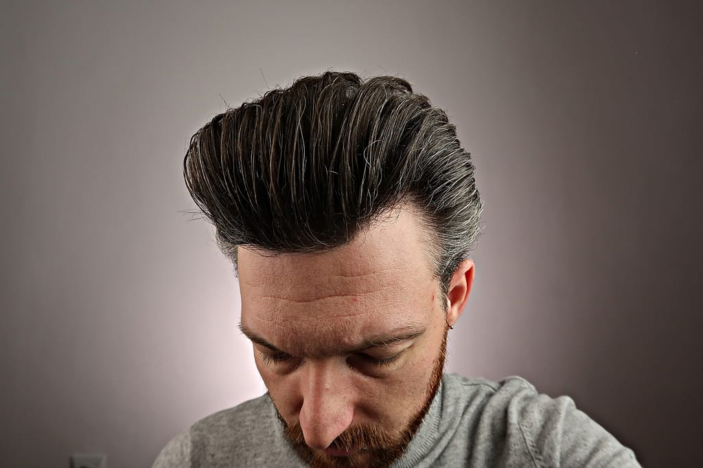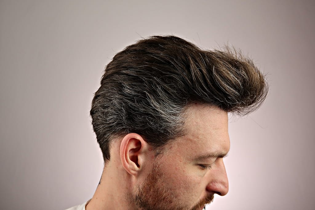 - chwyt średni, wydaje się jakby włosy nie były mocno związane pomadą ale jednak się trzymają i na twarz nie lecą