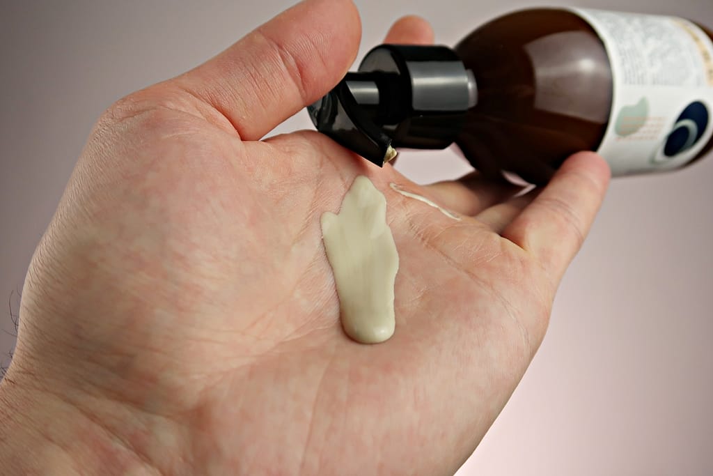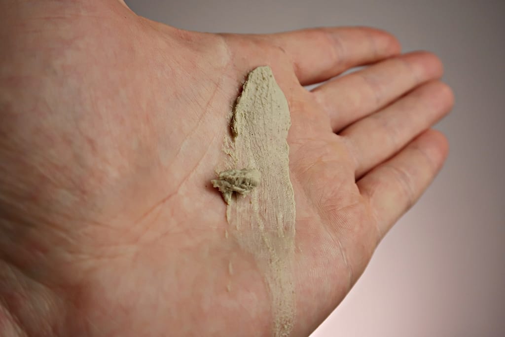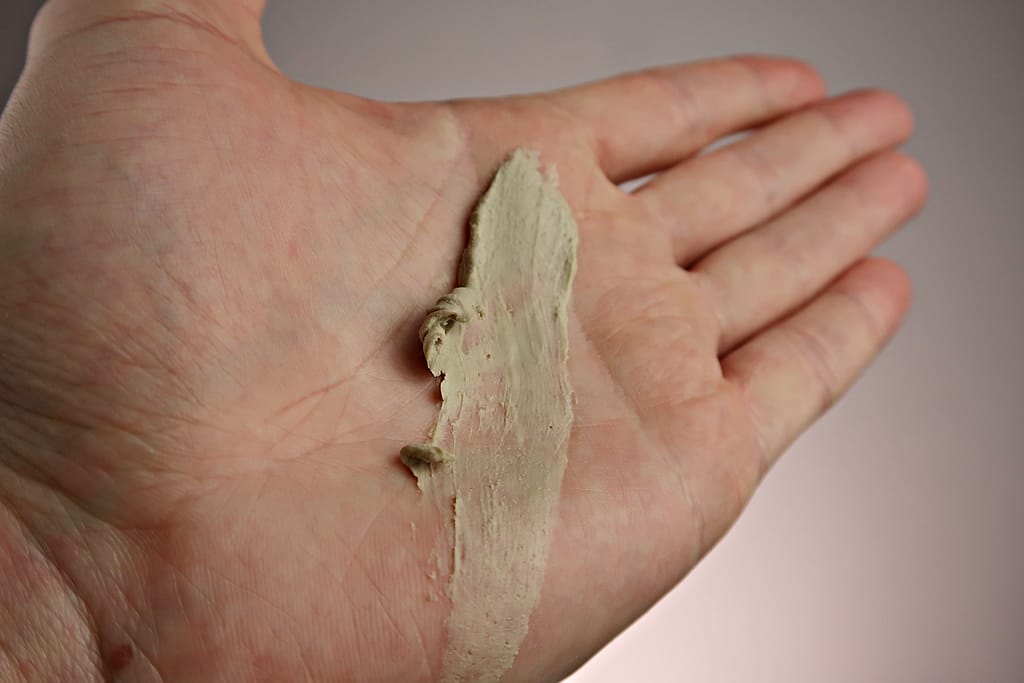 - kremowa ale gęsta konsystencja, coś jak glinka do włosów