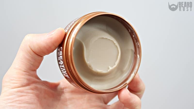 Konsystencja: glinka na pierwszy rzut oka wygląda jak wosk, wybiera się z pojemnika z lekkim oporem, a jej rozprowadzanie w dłoniach wymaga użycia trochę siły, szczególnie jeśli produkt jest zmarznięty; Matte Rebel Clay przypomina taki suchy, tępy i nieco lepki wosk.