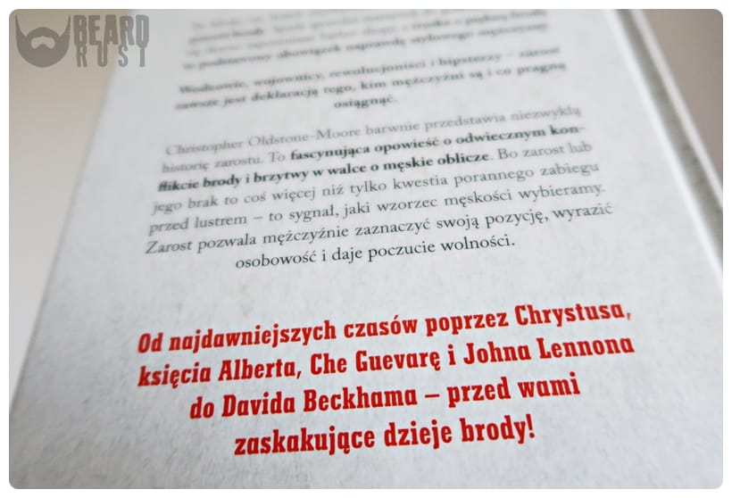 Powiedzmy sobie szczerze, na polskim rynku nie ma wiele książek na temat brody, jej historii, pielęgnacji i innych aspektów, którę mogą wiązać się z męskim zarostem (ostatnia jaką recenzowałem to książka pt. Co dwie brody, to nie jedna). Boom na brody widoczny jest na ulicach (co drugi mężczyzna nosi brodę, nie ważne z jakich pobudek – broda to styl życia lub z lenistwa), w witrynach nowo powstałych barber shopów (z półek wylewają się kosmetyki do pielęgnacji brody), w samych barbershopach (kolejki do barbera w oczekiwaniu na profesjonalne przystrzyżenie brody w męskim towarzystwie rosną już od wczesnych godzin porannych).