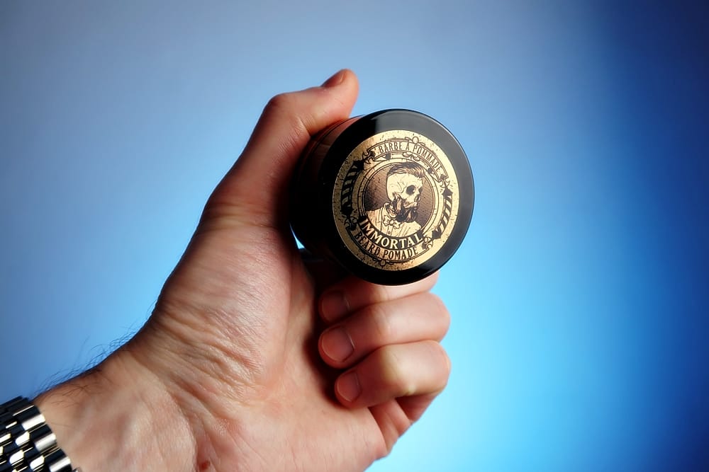 Kolejnym produktem w ofercie marki jest pomada do brody. Zamknięta w szklanym słoiczku o pojemności 40 ml z zakręcanym wieczkiem. Pomada przypomina te do włosów bardziej niż typowy balsam do brody. W konsystencji jest gęsta i klejąca. Po nałożeniu na brodę od razu da wyczuć się chwyt produktu oraz mat jaki pozostawia na brodzie. Pomada idealnie sprawdzi się do dłuższych bród oraz jako dyskretna alternatywa dla tłustych i obciążających brodę balsamów.
