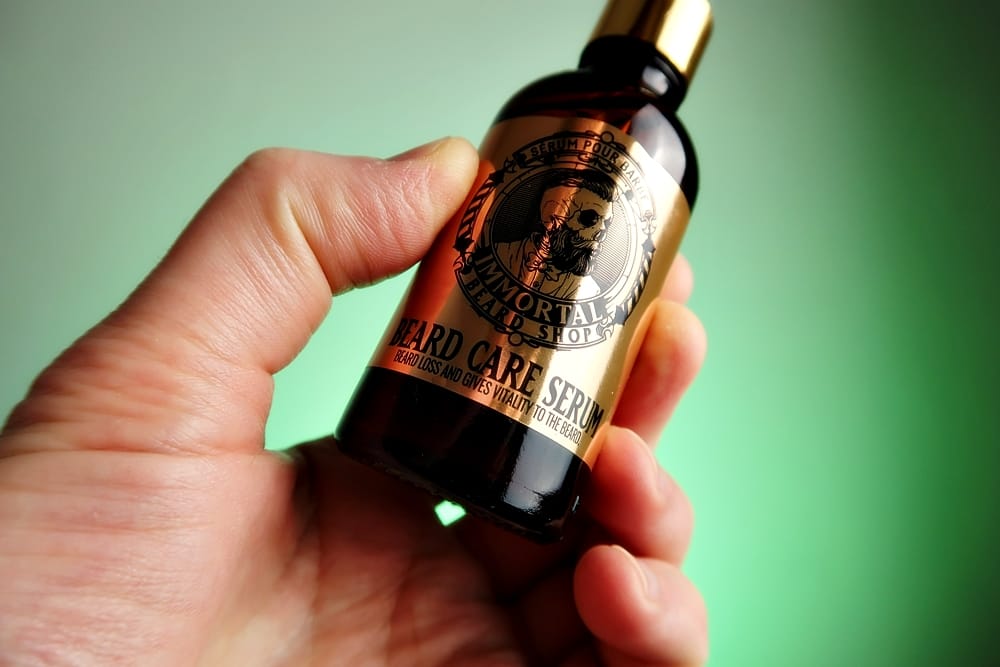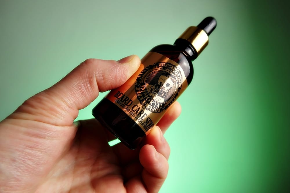 Na koniec serum do brody Immortal. Produkt zamknięty w niemal identyczne szkło jak w przypadku olejku. Ta sama pojemność i aplikator. Serum ma to do siebie, że jest śliskie i szybko się wchłania. Natychmiastowo zmiękcza brodę, która robi się niewiarygodnie przyjemna w dotyku. Serum szybko się wchłania i nie pozostawia na rękach filmu. Nadaje też zauważalny połysk na brodzie. Producent twierdzi, że zapobiega również powstawianiu łupieżu na brodzie.