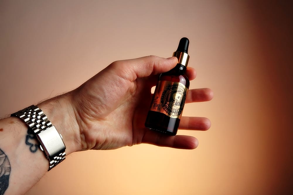 Przechodzimy do olejków. Pierwszym z nich jest tzw. Full Beard Oil. Znajduje się w szklanej buteleczce o pojemności 50 ml. Aplikacja następuje za pomocą pipety. Olejek jest gęsty i tłusty. Na brodzie pozostawia zdecydowany połysk. I tutaj wracamy do tego tureckiego blichtru, o którym mówiłem na początku. Musi być na bogato i błyszcząco. Olej dobrze zmiękcza brodę i pozostawia ją miękką na długi czas.