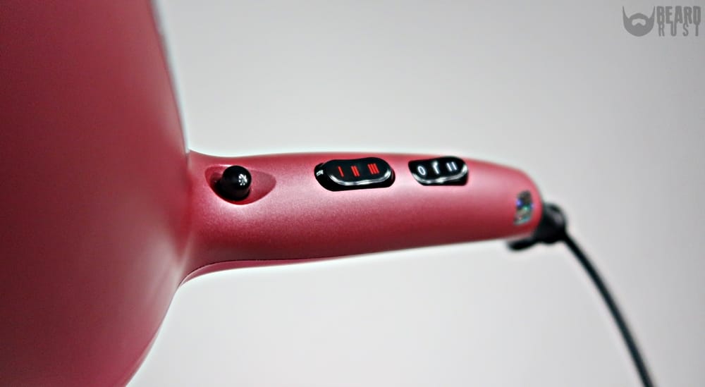 Moja suszarka ma 2 stopnie siły nawiewu – wolny i szybki. Posiada 3 stopnie temperatury – zimne powietrze, ciepłe i gorące. Ostatnią funkcją jest jonizacja, którą uruchamiam czarnym guziczkiem. Włosy zaczynamy suszyć ciepłym powietrzem. Gdy już są prawie suche, zmieniamy powietrze na chłodne i dodatkowo wciskamy jonizację. Ciepłe powietrze ma pomóc nam odparować wodę z włosów. Niestety tworzą się wtedy na włosach ładunki dodatnie tzw. kationy i łuska włosa się otwiera. Aby włosy nie były połamane, suche i żeby się nie elektryzowały suszenie kończymy zimnym powietrzem z jonizacją, która emituje ładunki ujemne tzw. aniony i zamyka łuskę włosa przez co włos jest zdrowy, lepiej się układa i dobrze wygląda.