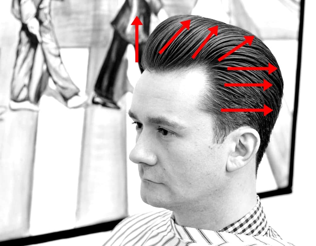 Do fryzur klasycznych takich jak slick back, longtrim, side part czy pompadour zaczynamy od zaczesania wilgotnych włosów w dół i od czubka głowy wydzielamy pasma co 1-2 cm nakręcając je na szczotkę i podnosząc do góry. Powietrze kierujemy od nasady włosów w gorę do końcówek. Czynność powtarzamy aż nie dojdziemy do grzywki. Potem suszymy boki do tyłu. Wyjątkiem przy tej metodzie jest tylko side part, który suszymy nieco inaczej. Zaczynamy od przedziałka – włosy krótsze z jednej strony suszymy w dół. Dłuższe włosy suszymy do prawej lub lewej w zależności na którą stronę mamy side parta. Można je suszyć tez nieco po skosie. Na końcu grzywkę wyciągamy do góry i do tyłu aby nadać jej fajną falę.