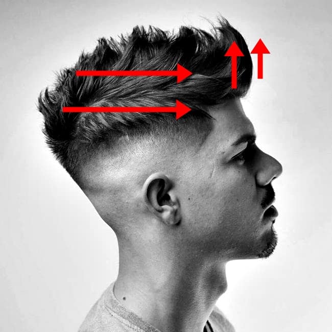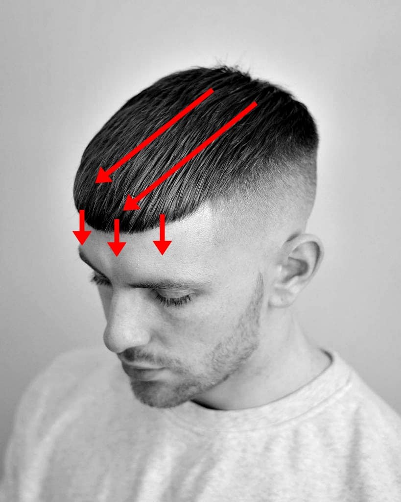 Przy fryzurach typu crop czy quiff zaczynamy od tego samego – wszystkie włosy zaczesujemy w dół na czoło. Zakładamy dyfuzor i włosy suszymy kolistymi ruchami. Można raz na jakiś czas przelecieć włosy ręką kontrolując jednocześnie ich stopień wysuszenia. Przy cropie grzywkę zostawiamy na czole. Jeśli jest oporna i odbija się od czoła w tzw. daszek wtedy podkręcamy ją do środka rollerem i suszymy ciągle w dół. Przy quiffie ta sama reguła tylko na końcu suszymy grzywę pod górę.