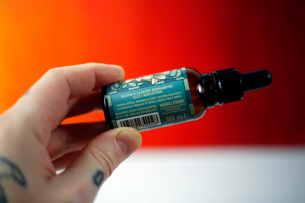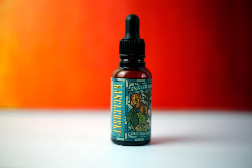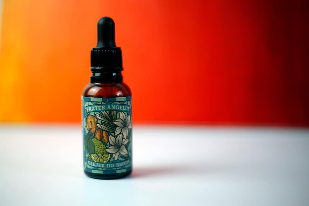 Olejek do pielęgnacji brody jest uzupełnieniem serii Frater Angelus. Mieści się w buteleczce z ciemnego szkła o pojemności 30 ml. Pojemnik zakończony jest pipetką, która z pewnością ułatwi precyzyjną aplikację produktu na dłoń lub bezpośrednio w brodę. Etykieta tożsama z tą z wody kanclerskiej okrywa całą powierzchnię butelki. Znajdziemy to duże logo marki, Brata Anioła brak, za to są obrazki wskazujące na zapach. Są tam również informacje odnośnie produktu.
