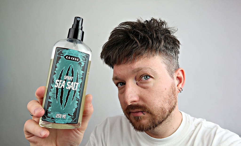 Do tej pory używałem soli morskiej typowo jako prestylera, czyli nakładałem ją na włosy wilgotne i suszyłem. Koendu ma na to dwa dodatkowe pomysły. Pierwszym z nich jest aplikacja na włosy suche i wgniecenie produktu we włosy, drugim stosowanie soli razem z pomadą czy innym kosmetykiem do włosów. Atomizer aplikuje odpowiednią ilość bardziej w postaci stróżki soli morskiej aniżeli mgiełki. Co do efektów: