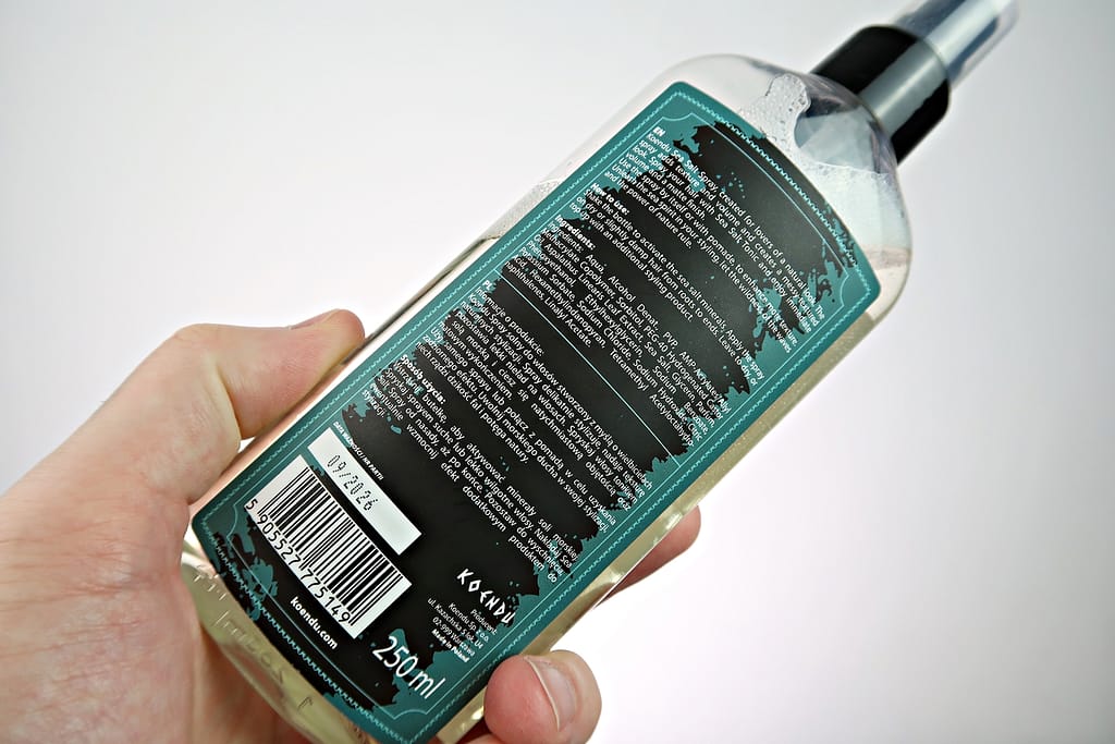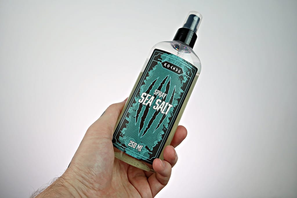 Sól morska Koendu lub jak nazywa to producent spray solny to kosmetyk kierowany do wielbicieli luźnych stylizacji. Spray ten ma wstępnie ułożyć włosy ale przede wszystkim nadać tekstury. Sea Salt Koendu występuje w plastikowej butelce o pojemności 250 ml z atomizerem. Opakowanie zdobi niebieska etykieta ze śladami pazurów drapieżnej bestii. Tylna naklejka informuje nas o sposobie użycia, składzie i działaniu produktu. Spray jest przezroczysty i odznacza się świeżym jakby morskim zapachem ale ma w sobie też woń alkoholu.