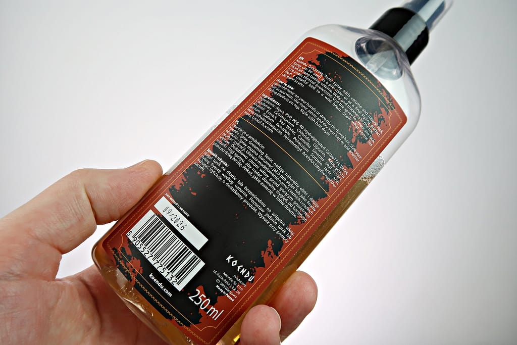 Grooming Tonic to produkt, którego nie mogło zabraknąć w szeregach Koendu. Jego zadaniem jest przede wszystkim nadanie włosom objętości oraz ochrona przed gorącym powietrzem podczas suszenia. Grooming występuje w podobnej butelce 250 ml z atomizerem co Sea Salt. Swoim kolorem do złudzenia przypomina kultowy już Grooming Tonic marki Reuzel. Żółty kolor toniku oraz pomarańczowa etykieta każdemu pomadowemu świrowi będzie kojarzyć się tylko z jednym. Tonik ma delikatnie gęstszą konsystencję niż sól morska i jest bardziej lepki w dłoniach. Producent nie określa jednoznacznie zapachu. Mój nos wyczuwa tu jakieś delikatne owocowe (chyba cytrusowe) nuty zapachowe.