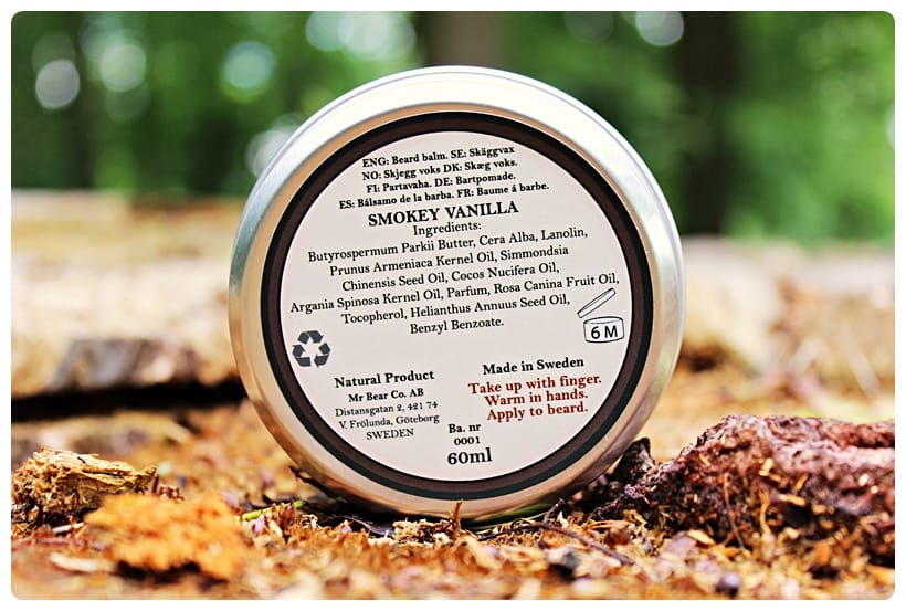 Balsam znajduje się w typowej dla marki Mr Bear metalowej puszcze, którą zdobią dwie etykiety – górna i dolna. Na wieczku od razu widzimy pana Misia. W tym wypadku również zauważyłem różnicę w jakości wykonania etykiety. Pod spodem znajdziemy skład i sposób użycia balsamu: Take up with finger. Warm in hands. Apply to beard.