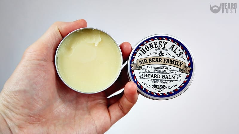 Balsam od pana Misia to produkt, od którego zaczęła się moja przygoda z kosmetykami do brody. Co prawda był to zapach Woodland, ale sama formuła balsamu nie zmieniła się jakoś mocno od tamtej pory. Edycja limitowana Honest Al’s odznacza się tym samym zapachem co olejek i pomada. Po etykiecie widać również podobieństwo z logo barber shopu. Pojemność puchy to cały czas 60 ml. Konsystencja balsamu woskowa, pierwszy dziab może wymagać użycia większej siły lub paznokcia. Pod wpływem ciepła balsam się topi i zaczyna przypominać olejek. Mój egzemplarz posiadał małe grudki, ale nie ma się czym przejmować bo po roztarciu znikają. Chwyt balsamu raczej średni, połysk na brodzie naturalny. Balsam powinien poradzić sobie z codziennym układaniem niesfornej brody choć nie jest to najmocniejszy balsam jakiego używałem. Skład balsamu jest następujący: