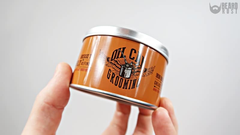 Pomada woskowa Iron Horse tak jak poprzednicy mieści się w metalowej puszcze tym razem w kolorze pomarańczowym. Od góry pomady strzeże tłoczone wieczko z logo marki. Pod spodem znajdziemy skład oraz opis sposobu użycia produktu. Pucha fajna, ładnie wykonana i wielofunkcyjna.