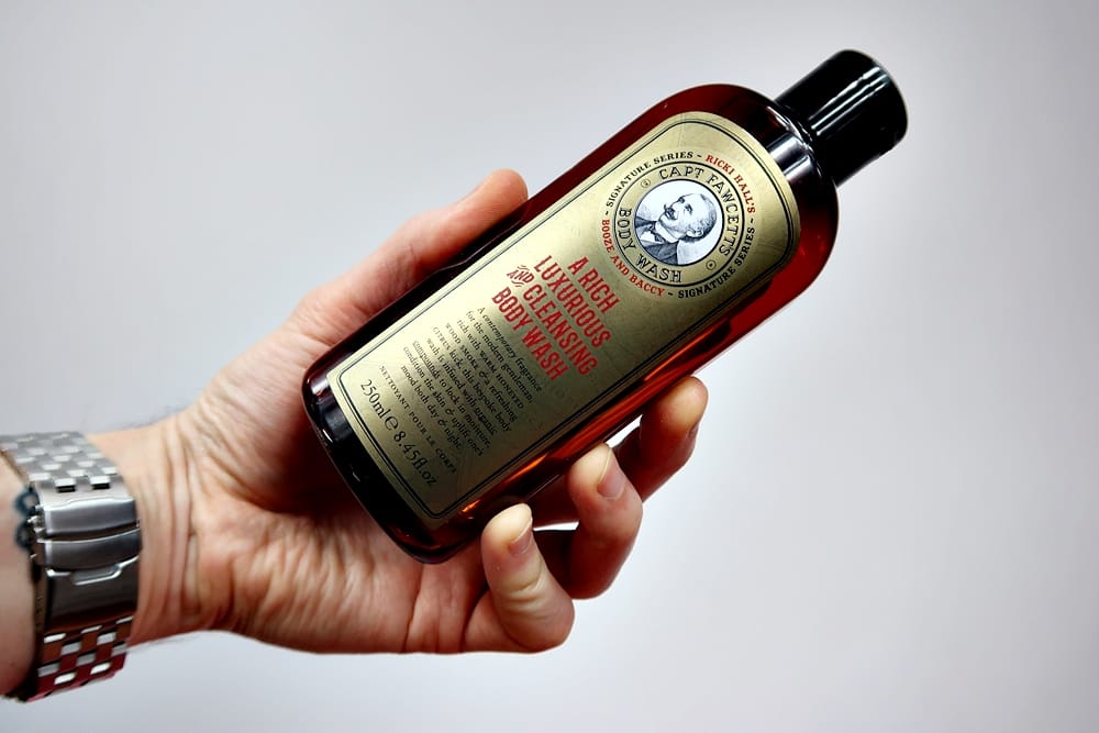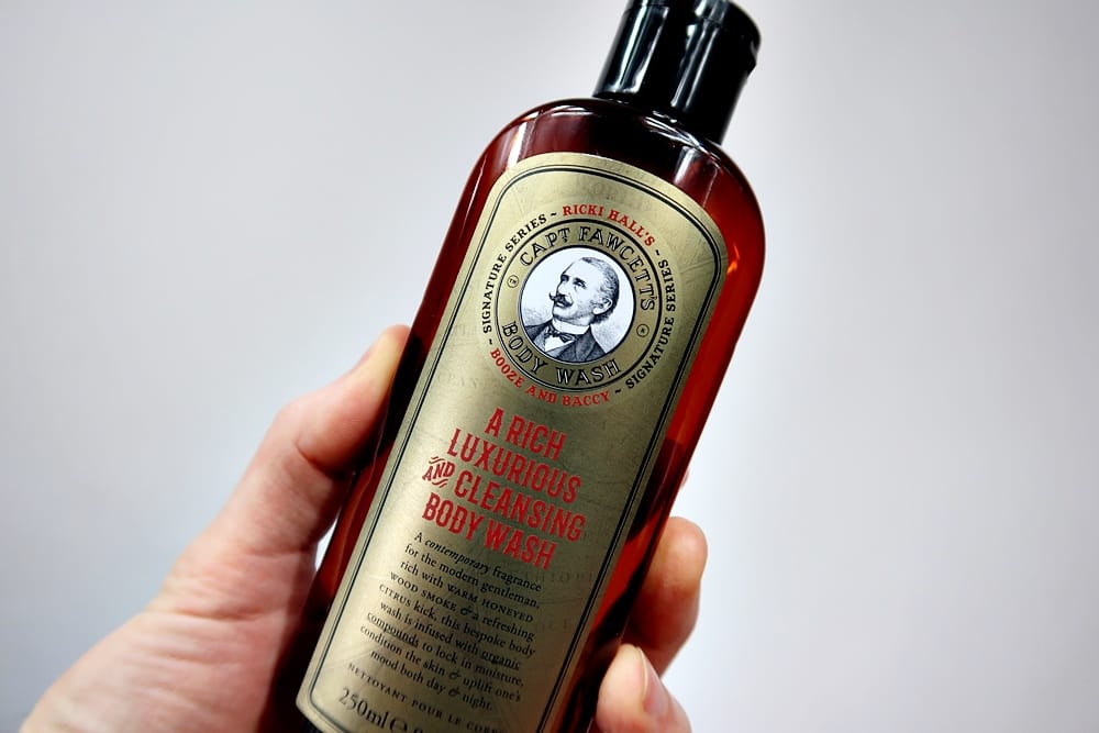 Zaczniemy od żelu pod prysznic marki Capt. Fawcett, która na bank jest znana wszystkim amatorom kosmetyków do brody. Sygnowana nazwiskiem Hall seria kosmetyków o wspaniałym zapachu Booze and Baccy – wyjątkowego połączenia nut klasycznej woni Bay Rum, cytrusowych zapachów bergamotki i skórki pomarańczy słodkości miodu i charakterystycznego, mocnego aromatu świeżych liści tytoniu, a całość okraszają dodatkowo aromatyczne kadzidła – doczekała się żelu pod prysznic. Wcześniej mogliśmy nabyć olejek, balsam do brody czy nawet perfumy. Teraz ów przekozacki zapach możemy przenieść na nasze ciało podczas porannego prysznica/kąpieli. Żel mieści się w plastikowej butelce, fajnie obrendowanej. Przyjemnie się na nią patrzy.