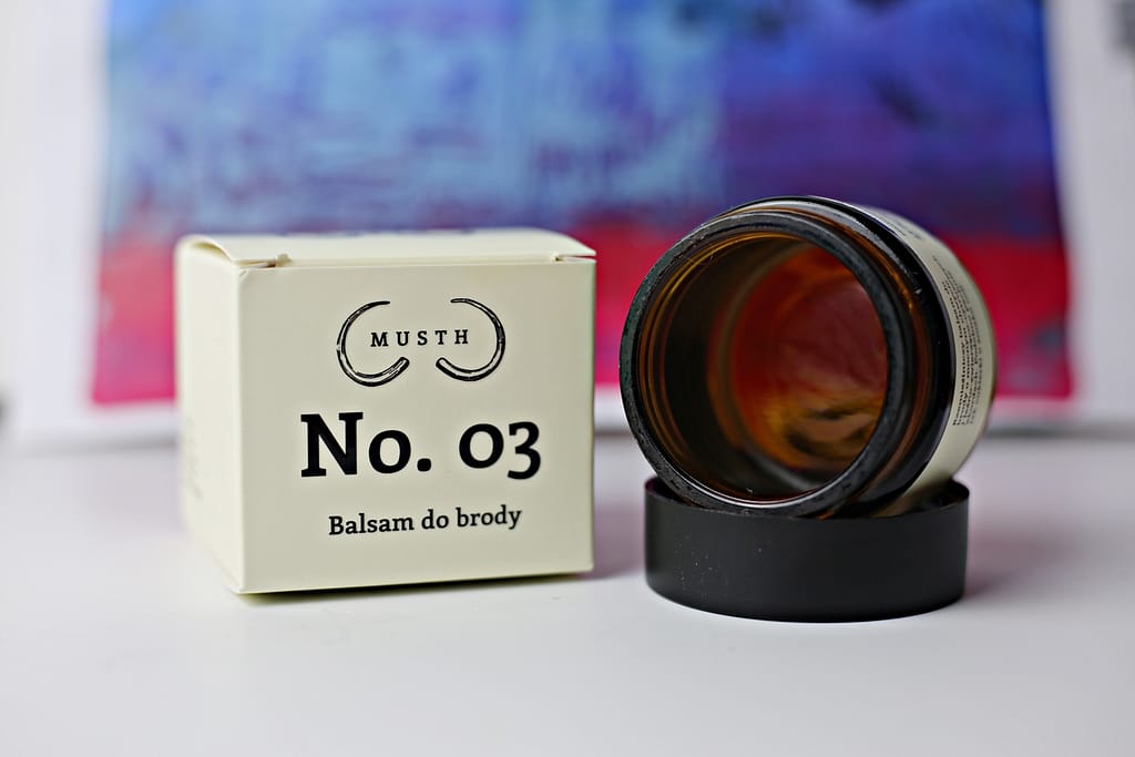 Zaczniemy od brody i od balsamów marki Musth z Gdańska. Musth to dziecko Tomasza, z którym znamy się nie od dziś. Po wielkim sukcesie olejków z numerkami 03 i 04 przyszedł czas na balsamy. Minimalistyczne szklane słoiczki z czarną zakrętką i beżową etykietą mieszczą się w kartonowych pudełeczkach. W środku balsamy o fajnej konsystencji, nie za miękkie, nie za twarde. Oba numerki odznaczają się całkiem mocnym chwytem, ale różnią się zapachami. Numer 03 to leśno-zwierzęco-cytrusowa mieszanka zapachowa. Jak pisze sam producent: Za jej wibrujący wydźwięk odpowiedzialne jest ostre piżmo, słodki tymianek i cierpki grejpfrut. Kompozycję dopełnia ziemisty kajeput i przejrzysty świerk, dopełniony słoneczną bergamotą. To zupełnie nowe doświadczenie leśnego zapachu, to cały ekosystem!