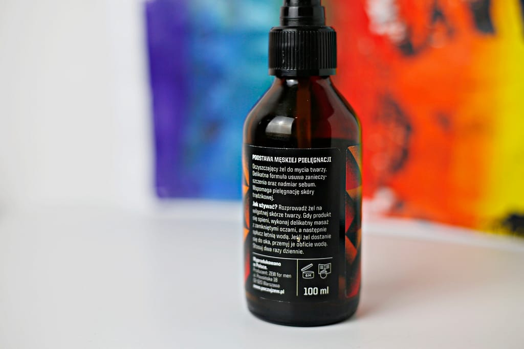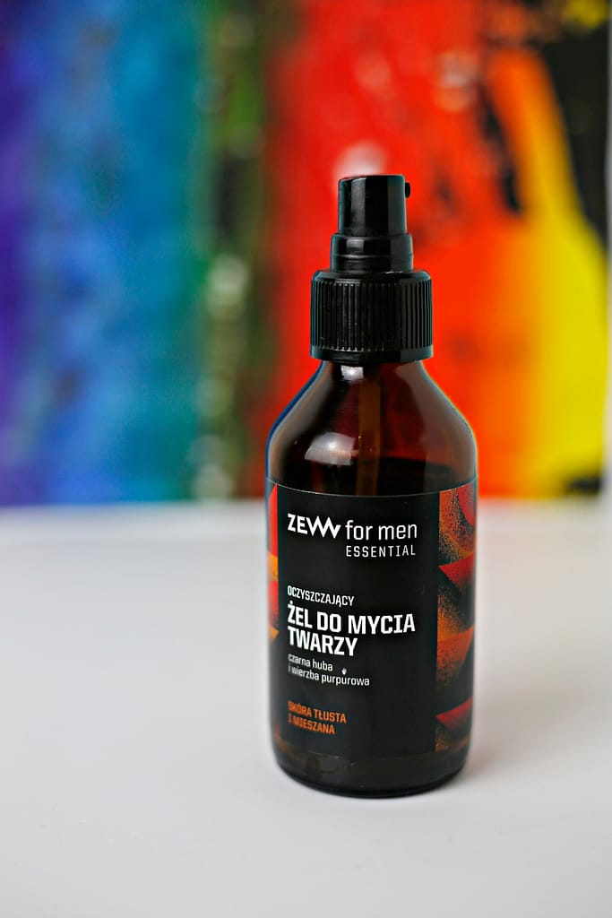 Moim odkryciem roku 2023 jest ten oto niepozornie wyglądający żel do twarzy naszej rodzimej marki Zew for men. Jeśli czytacie i oglądacie mnie na bieżąco zapewne wiecie, że od zawsze polecam dezodorant w sztyfcie i krem do twarzy Zew for men. Te produkty są po prostu genialne i świetnie wpasowują się w moje codzienne potrzeby. Opisywałem je w poprzednim denku. No ale przejdźmy do żelu do mycia twarzy. Z tego co wiem jest to nowość jak i cała seria Essential. Żel mieści się w szklanej buteleczce z funkcjonalną pompką, a oko cieszy fajna, kolorowa etykieta. Pojemność szkiełka to 100 ml. Produkt ma lekką żelową konsystencję, może nawet bardziej płynną niż gęstą żelową ale jest niesamowicie wydajny, ponieważ naprawdę niewielka ilość wystarczy aby obmyć lico.