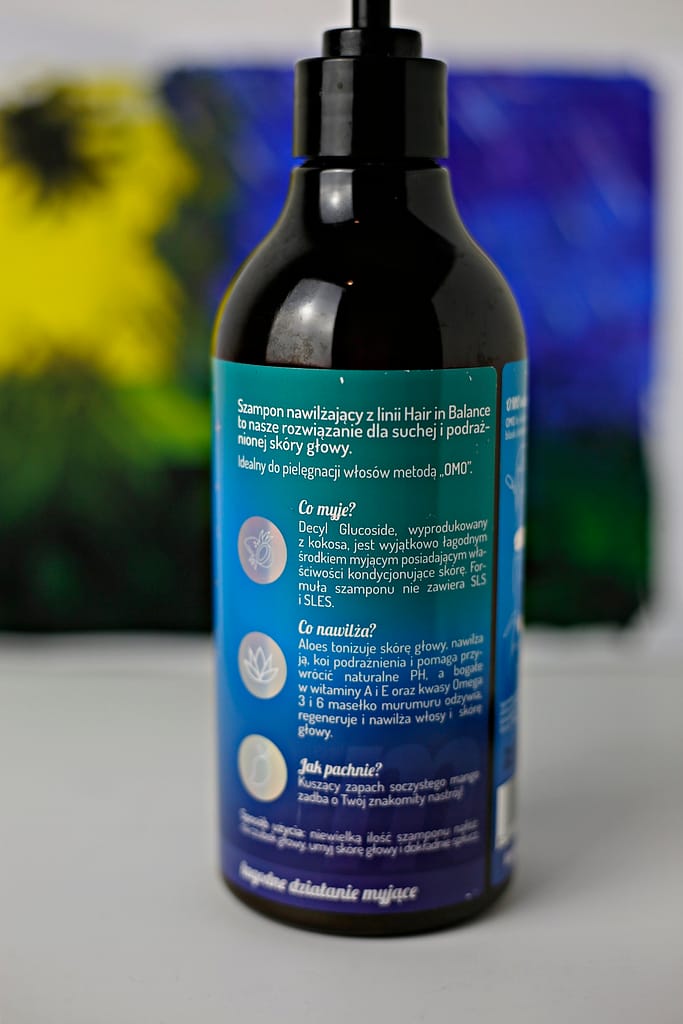 Marka Hair in Balance by Only Bio to całkiem fajna marka posiadająca w swojej ofercie masę różnych kosmetyków do włosów itd. Szampon, o którym dziś mowa zakupiłem po tym jak rozjaśniłem sobie włosy by uzyskać platynkę czy tam chłodny blond. Miał on pomóc mi zregenerować i “wyleczyć” suchą i podrażnioną skórę po rozjaśniaczu. Nie powiem, że miło wspominam swoje pierwsze rozjaśnianie włosów bo dyskomfort był duży ale zawsze chciałem tego spróbować i już wiem, że raczej tego nie powtórzę. Włosy jednak dostają w dupę podczas tego chemicznego procesu. Wracając do szamponu – mieści się on w dużej 400 ml butli z pompką. Etykieta jak to w przypadku tej marki kolorowa, w nieco kosmicznych klimatach. Szampon ma delikatny zapach, który określę jako kosmetyczny bo nie wyróżnia się jakoś specjalnie.