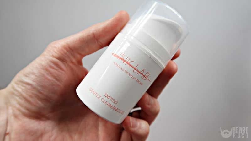 Zaczniemy od mycia i tu przychodzi nam z pomocą delikatny żel do mycia – Gentle Cleansing Gel. Znajduje się w białym minimalistycznym opakowaniu z pompką o pojemności 50 ml. Żel jest delikatny, bezboleśnie rozprowadza się po świeżej dziarce, daje uczucie ukojenia i lekko chłodzi zranioną skórę. Co więcej, nie wysusza jej i nie podrażnia dzięki swojej delikatnej formule. W skład żelu wchodzą m. in: D-pantenol, aloes, gliceryna, probiotyki, ekstrakt z korzenia rośliny Yacon. Cena za opakowanie to 25 zł, czyli pieniążki nieduże, a kosmetyk naprawdę kozacki i działa.
