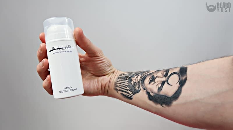 Po umyciu dziary najlepiej posmarować ją kremem. Do tej pory stosowałem kremy, a może bardziej maści typu Alantan czy Bepanthen. O ile ten drugi był znośny to Alantan nie dość, że ciągnął skórę podczas nakładania to jeszcze strasznie brudził i tłuścił ubrania i rzeczy, którymi czasami się o tatuaż dotknąłem. W przypadku kremu Recovery INK-LAB nie napotkałem takich problemów. Po pierwsze krem jest niesamowicie lekki i nie tłusty. Jego aplikacja jest przyjemna bo krem jest bardzo delikatny, nie ciągnie skóry i szybciutko się wchłania. Co więcej, pozostawia skórę nawilżoną i jędrną. W jego składzie znajdziemy: masło shea, alantoinę, D-pantenol, niacynamid (witamina PP), glicerynę, galusan epigallokatechiny (przeciwulteniacz), hydranov, estry cholesterolu i maris sal, czyli wzbogaconą wodę morską. Opakowanie podobne, ale występujące w dwóch pojemnościach: 50 i 100 ml. Osobiście zawsze biorę 100 ml bo różnica w cenie to tylko 10 zł. Za mniejszy pojemnik płacimy 35 zł, za większy 45 zł. Mocno polecam oba produkty i czekam z niecierpliwością na krem z filtrem bo chyba tylko tego brakuje w ofercie tej zacnej marki. Pozdrawiam w tym miejscu Kasię, od której dostałem swoje pierwsze INK-LABY.