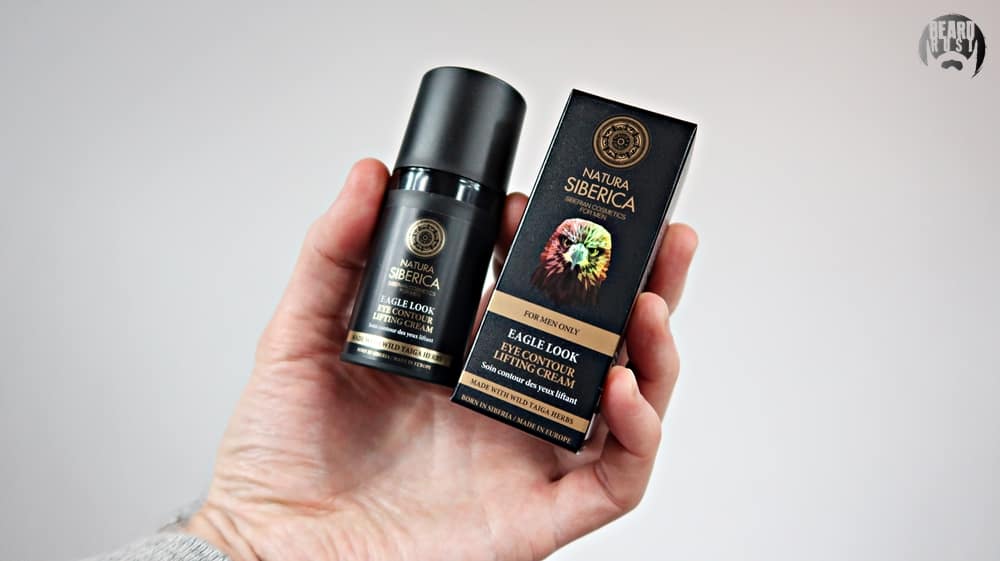 Krem znajduje się w pojemniku plastikowym o pojemności 30 ml, a jego aplikacja zachodzi poprzez naciśnięcie pompki. Pełna nazwa kremu to Eagle Look Eye Contour Lifting Cream. Krem wzbogacony jest o proteiny z syberyjskiego kawioru, które pomagają zniwelować zmarszczki, zredukować obrzęk oraz cienie. Co więcej w składzie również organiczny ekstrakt z dzikiej północnej maliny moroszka, czystej kofeiny oraz kwasu hialuronowego, które nawilżają, tonują i dodają skórze energii. Wszystko brzmi świetnie, ale czy naprawdę działa?