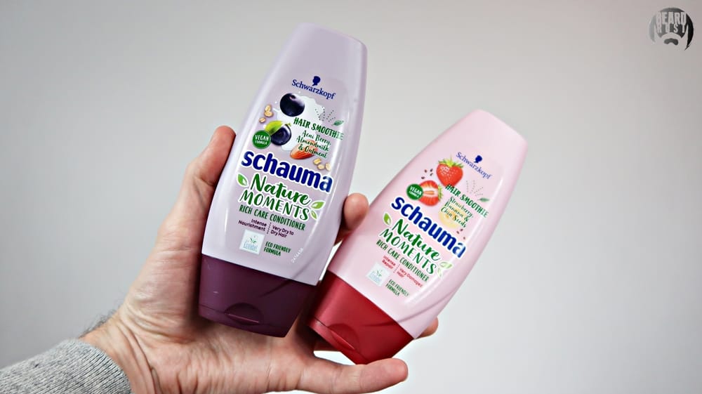 Któregoś dnia w lokalnym markecie moją uwagę przykuły odżywki do włosów marki Schwarzkopf. To co mnie w nich zaciekawiło to mała zielona naklejka Vegan Formula. Jeśli wiecie lub nie to mija prawie rok od kiedy zostałem wegetarianinem, więc wszystkie rzeczy na których widzę napisy vege przykuwają moją uwagę. Odżwki Shauma Nature Moments to jak producent określa Hair Smoothie, czyli szejk do włosów. Dostępne są dwa produkty: odżywka do bardzo zniszczonych włosów z truskawką, bananem i nasionami chia oraz odżywka do suchych i bardzo suchych włosów z acai, mleczkiem migdałowym i płatkami owsianymi. Początkowo myślałem, że to tylko ładnie brzmi i wygląda, ale jak zajrzałem do składu to pozytywnie się zdziwiłem. Otóż oba produkty mają dosyć krótkie i proste składy. Bardzo wysoko w składzie jest np. gliceryna, masło shea oraz ekstrakty z ww roślin. Odżywki przepięknie pachną, mają super kremową konsystencję, a efekty po ich używaniu widać od razu. Włosy są miękkie, ładnie się rozczesują, są odżywione i błyszczą. Bez wahania stawiam je przed odżywką Garnier. Nie mam uwag. Za butlę 200 ml zapłacimy śmieszne 8-10 zł. Polecam.