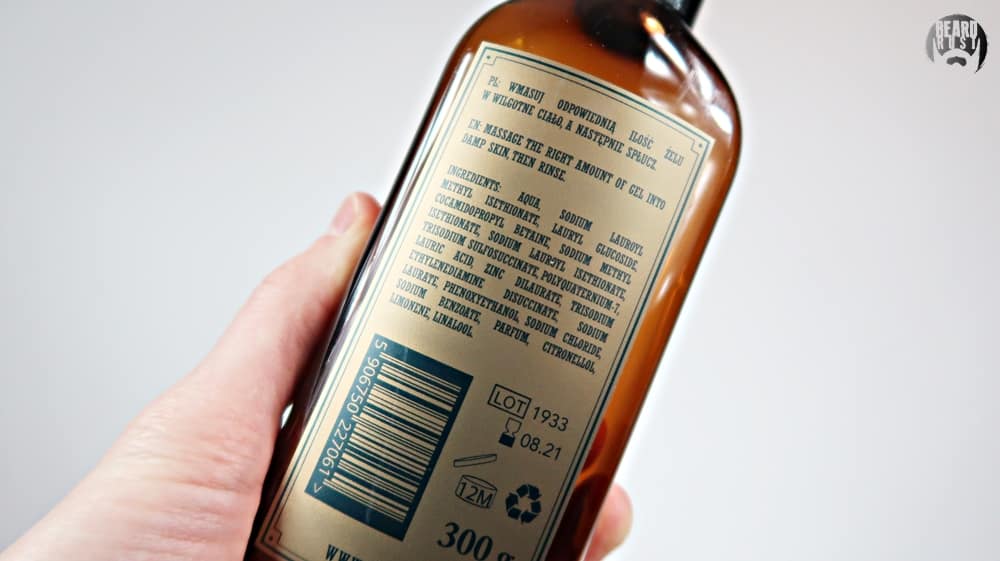 Na koniec wpisu wisienka na torcie czyli żel pod prysznic marki Groomen. Marka z 3-miasta niejednokrotnie gościła na moim blogu i kanale YouTube. Recenzowałem chyba każdy z ich produktów i zawsze były to pozytywne słowa. W tym przypadku nie jest inaczej. Żel pod prysznic uzupełnia męską linię do pielęgnacji ciała. Występuje w butelce plastikowej o pojemności 300 ml. Etykieta typowo groomenowa, tym razem (podobnie jak w przypadku balsamu do brody) kolory zostały odwrócone i etykieta jest głównie złota. Żel odznacza się charakterystycznym zapachem w klimacie tych kolońskich – jest męski i świeży. Konsystencja produktu jest gęsta i żelowa (przypomina szampony Masveri), dzięki czemu żel jest bardzo wydajny i wystarczy nam na ponad 3 miechy na luzie.