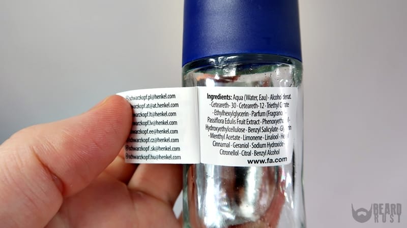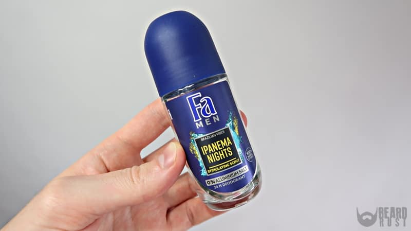 Ostatnio wśród moich znajomych bardzo popularnym antyperspirantem jest ten marki Suavecito. Ludziska wrzucają jego zdjęcia do social mediów pisząc o tym jaki jest świetny. Domyślam się, więc że sprawy pachowe nie są aż tak intymne żeby o nich nie pisać. Jestem tą osobą, która woli takie specyfiki w kulce. Nie przepadam ze antyperspirantami w sprayu bo szybko się kończą i mam wrażenie, że słabo działają. Nie lubię też sztyftów bo się kruszą, sypią, zostawiają ślady na ubraniu i przechodzą nieprzyjemnym zapachem ze skóry. Te w kulce zaś są fajne w aplikacji i mam wrażenie najbardziej wydajne. Do tej pory używałem kulek marki Nivea – albo tych dla sportowców albo tych które nie “żółcą bieli i nie bielą czerni”. Ostatnio jednak spróbowałem marki Fa bo spodobał mi się zapach. W necie nie za bardzo można znaleźć opis tego zapachu, ale dla mnie Ipanema Nights jest mega świeży i rześki, nieco owocowy. Kojarzy się z ciepłym wieczorem nad wodą. Jest intensywny i dobrze maskuje nieprzyjemny zapach. Producent zapewnia, że jest w 100% z naturalnych ekstraktów, nie zawiera soli aluminium oraz jest przyjazny dla wegan. A oto skład produktu: