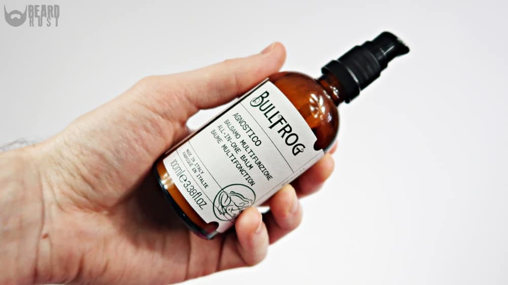 Jeśli czytacie na bieżąco moje wypociny to na pewno wiecie, że nie jestem fanem produktów X w Y. Często zdarza się bowiem, że jak coś jest do wszystkiego to jest do niczego. Sytuacja jest jednak inna w przypadku wielofunkcyjnego i wielozadaniowego balsamu Agnostico włoskiej marki Bullfrog. Balsam występuje w szklanej buteleczce o pojemności 100 ml. Aplikacja następuję poprzez pompkę. Etykieta zdobiąca balsam jest wykonana z szorstkiego papieru (coś jakby z recyklingu), jest minimalistyczna ale zawiera multum informacji na temat produktu. Jej design jest minimalistyczny, a użyte fonty fajnie współgrają z całością.