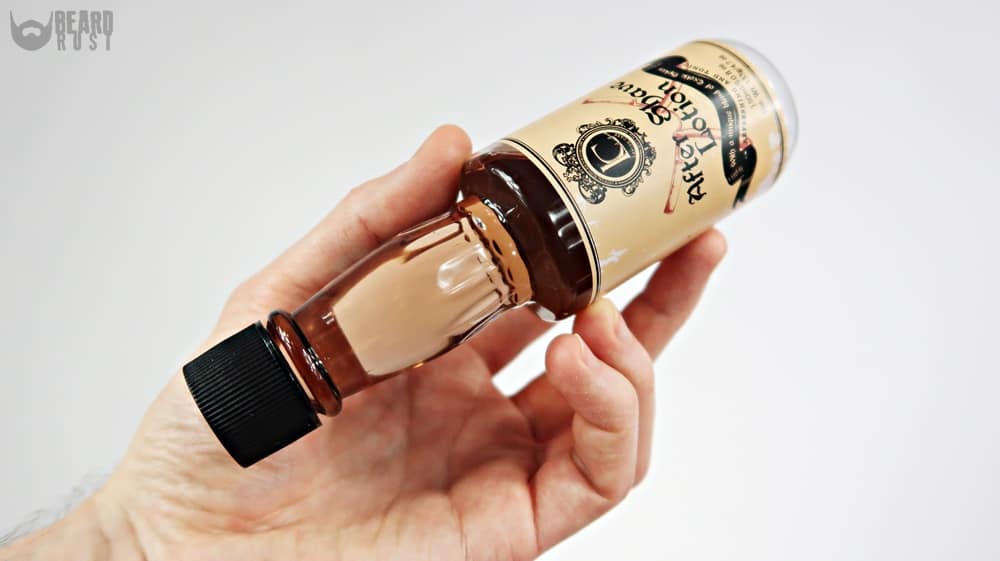 Na koniec zostawiłem sobie petardę jeśli chodzi o wody kolońskie. Jakiś czas temu recenzowałem dla was pomady greckiej marki Lavish Care. Otóż Lavish w swojej ofercie posiada nie tylko produkty do włosów, ale także do golenia. I dziś opowiem wam o fantastycznej wodzie kolońskiej – After Shave Lotion z unikalnym blendem egzotycznych przypraw. Woda występuje w plastikowej butelce (szkoda, że nie szklanej) o pojemności 150 ml. Etykieta jest prosta w beżowym/pastelowym kolorze, nieco wintydżowa. Znajdziemy tam logo marki, nazwę produktu, info o składzie i sposób użycia oraz naklejkę dystrybutora. Od góry szyję zabezpiecza korek, a aplikacja następuje przez jak ja to nazywam zakraplacz (coś jak w alkoholach).