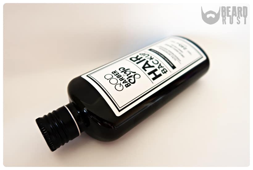 Szampon znajduje się w butelce wykonanej z czarnego tworzywa sztucznego, a to dlatego aby chronić zawartość przed światłem. Kontrastującym elementem minimalistycznego designu opakowania jest biała etykieta i czarne napisy ubrane w proste i przejrzyste grube fonty. Męsko, schludnie, bez zbędnych fajerwerków. Zakrętka również czarna, metalowa z niewielkim “frezem” na górnej krawędzi, która może ułatwić wam odkręcenie butelki mokrymi rękoma. Jednak najlepiej gdyby producent mógł zastąpić zakrętkę choćby pompką, która znacznie ułatwiłaby aplikację. Tak pozostaje nam tylko wlać szampon na rękę. Etykieta z tyłu informuje o składzie i sposobie użycia (obie etykiety są wodoodporne).