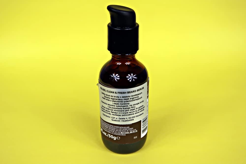 Serum do brody Reuzel spokojnie może zastąpić nam olejek do brody. Przyznam szczerze, że jest to kosmetyk w pewnym stopniu przypominający American Crew Beard Serum. Nie jest on jednak taki gęsty, a bardziej płynny. Serum występuje w szklanej buteleczce 50 ml (50g) z funkcjonalną pompką. Ta ma funkcję open/close w zależności od tego jak przekręcimy aplikator. Bardzo wygodna rzecz biorąc pod uwagę, że czasami wrzucamy kosmetyki do torby i szkoda, żeby coś się wylało i zalało nam inne cenne rzeczy.