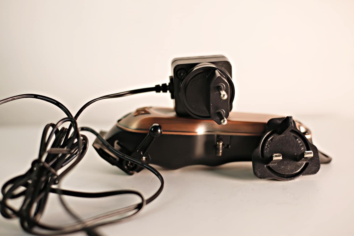 • kiedy wyładowuje się bateria zaczyna mrugać niebieska lampka na dole obudowy, po chwili maszynka od razu się wyłącza – nie słychać słabnących obrotów – więc jeśli nie przypilnujemy tego faktu to ostrze może pociągnąć włosy klienta kiedy robimy fade