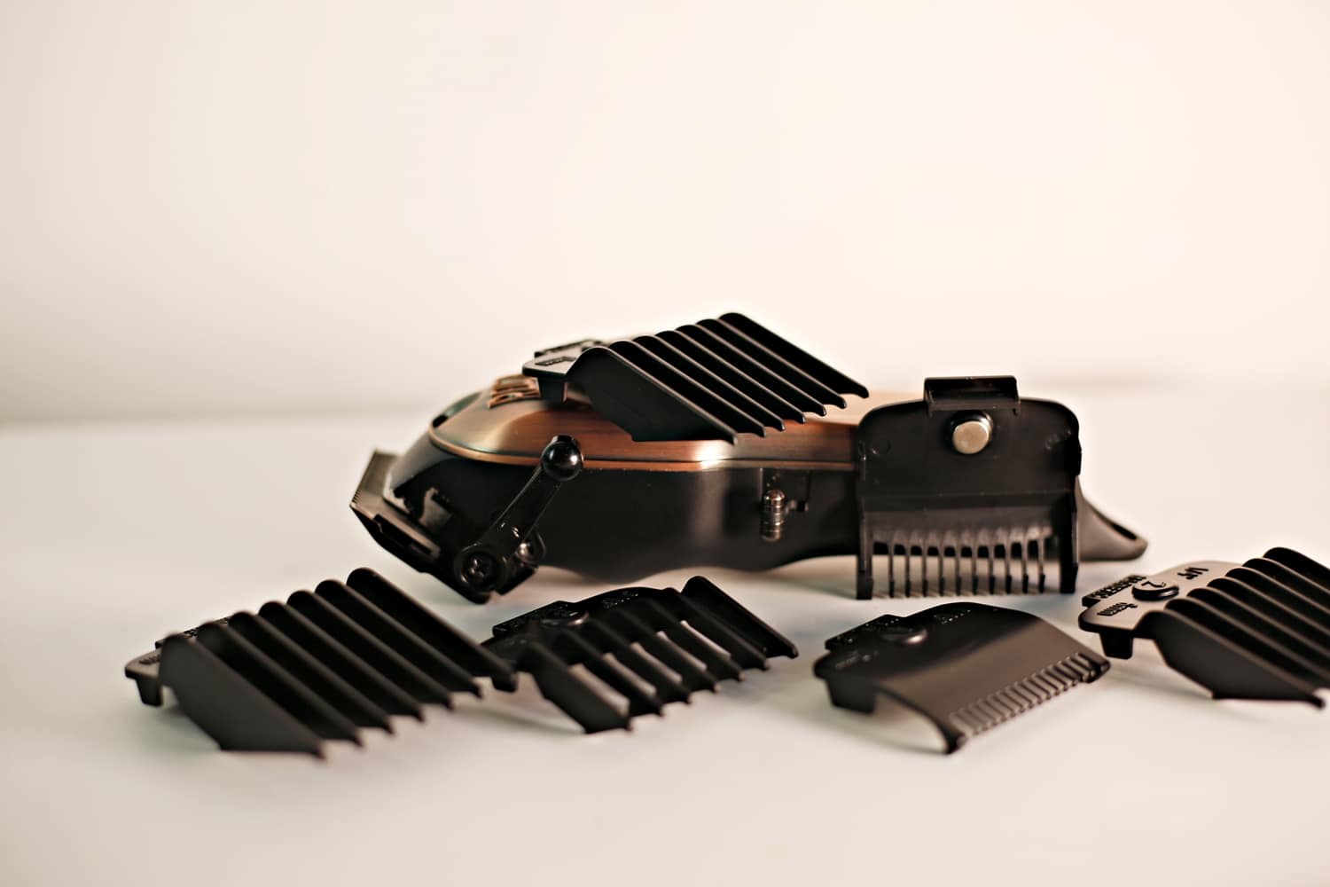• komplet magnetycznych nasadek dystansowych do złudzenia przypominających kształtem te znane z maszynek Wahl (zakres od 1,5 mm do 13 mm)
