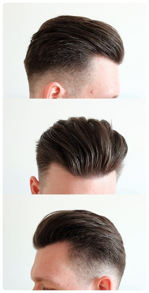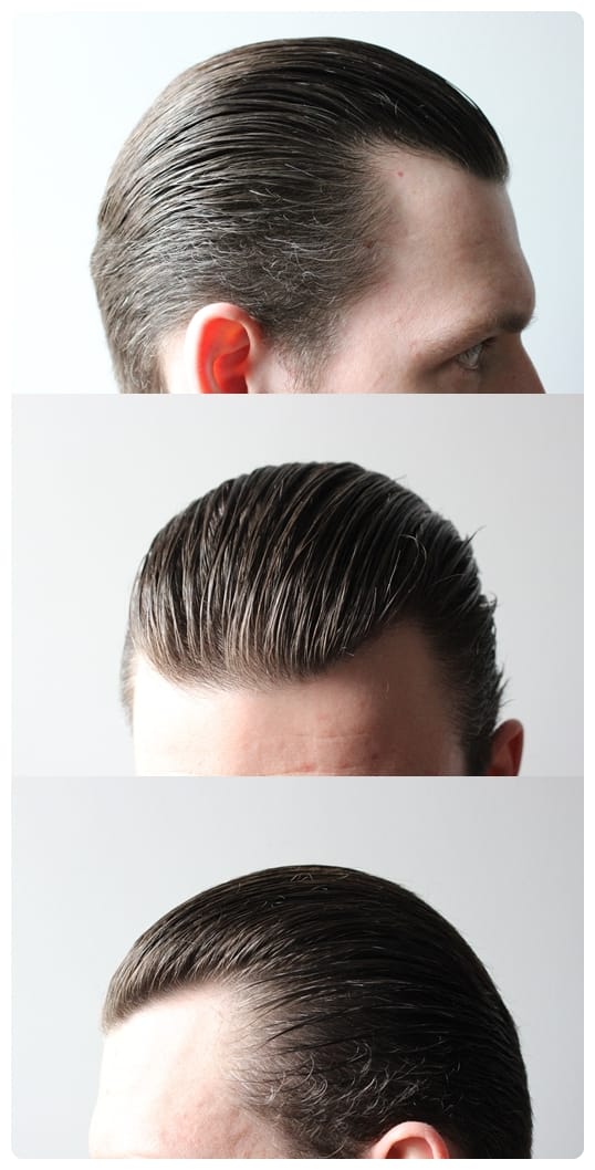 Jeśli chodzi o aplikację na włosy wilgotne to jest równie łatwa co na suche, a może i łatwiejsza. W tym przypadku możemy przykładowo uczesać coś bardziej klasycznego typu slick. Włosy na początku będą błyszczeć, ale po odparowaniu wody wróci ładny mat. Co więcej, chwyt będzie średni, bez skorupy, a po pewnym czasie włosy podniosą się i uzyskamy efekt jak na włosach suchych. Nadal będzie można włosy przeczesać grzebieniem na mokro lub ręką.