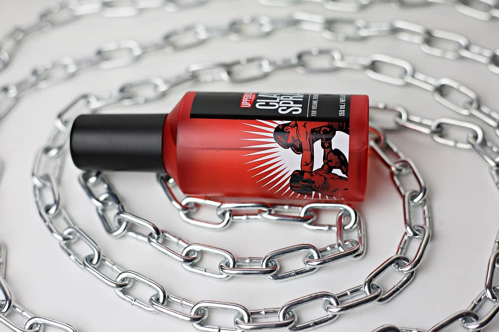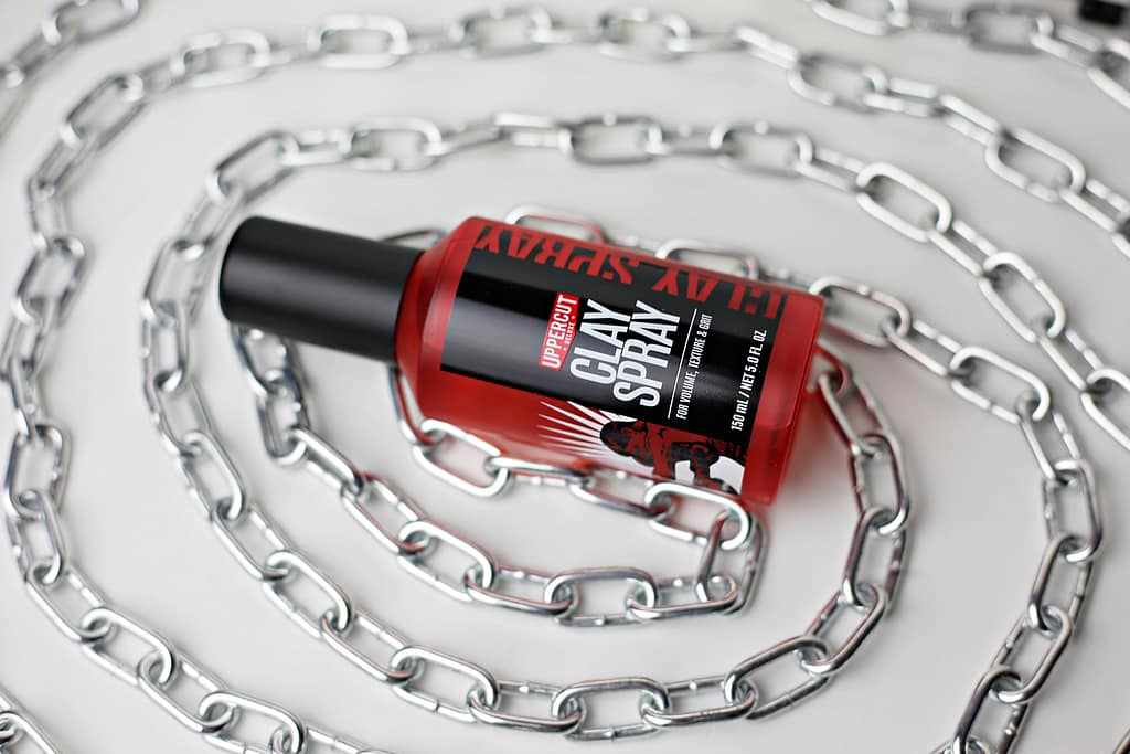 Clay Spray od Uppercut to wg producenta spray do włosów mający dodać naszym włosom objętości, tekstury i gritu, czyli takiego matowego/piaskowego feelu na włosach. Produkt mieści się w czerwonej, transparentnej butelce o pojemności 150 ml. Aplikatorem jest atomizer, który po naciśnięciu dozuje produkt w postaci czegoś pomiędzy mgiełką, a strumieniem. Na ściance butelki znajduje się logo producenta i nazwa kosmetyku oraz charakterystyczna dla UD para bokserów. Z tyłu opis produktu, skład, a pod spodem miniaturowa ulotka, który i tak raczej nikt nie czyta. Atomizer dodatkowo zabezpieczony jest zatyczką.