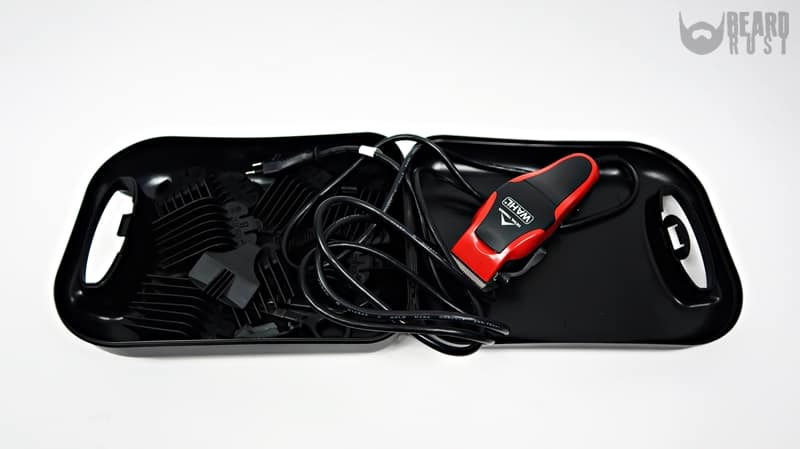 Wahl Clip ’n Trim występuje w dwóch wersjach kolorystycznych: czarno-białej i czarno-czerwonej. Jest maszynką przewodową o kablu długości … cm. Taka długość przewodu wystarczy aby ostrzyc się przy łazienkowym lustrze. W sytuacji gdy strzygłem szwagra, który jest wysoki, musiałem przekładać kabel z jednej strony na drugą i w takich przypadkach brakowało mi tych kilku centymetrów.